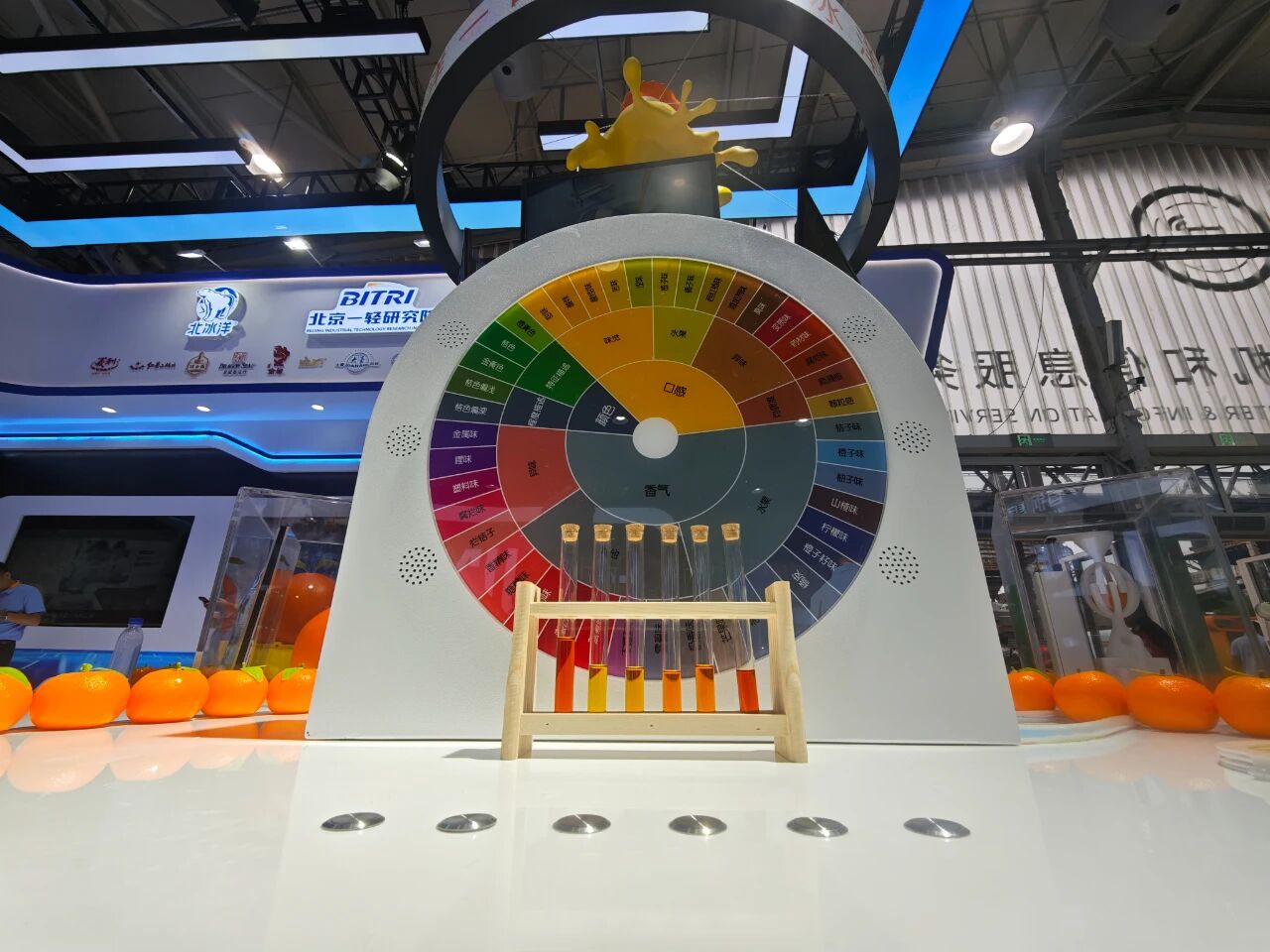 通过先进的整果清洗与低温压榨工艺,北冰洋不仅锁住了桔汁的原生风味与营养,更依托自主研发的“桔油回填技术”,精准调配不同成熟度桔油,赋予汽水独特的香气与层次感。现场观众可通过嗅闻按钮,感受不同桔油的香气差异,亲历北冰洋风味“灵魂”的诞生过程。